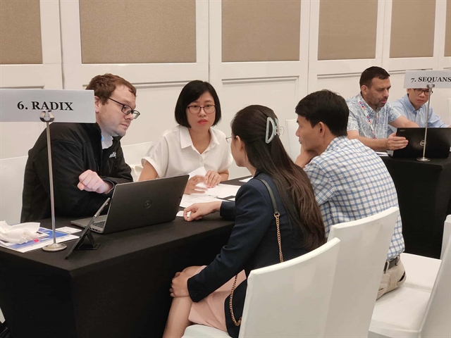 | Israeli companies having B2B meet-up with potential clients in a business connecting seminar in Hà Nội. |