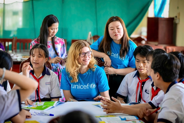 | UNICEF's staffs join a discussion with Vietnamese children. The 50-year partnership between the Government of Việt Nam and UNICEF has transformed significantly. —Photo Courtesy of UNICEF Vietnam |