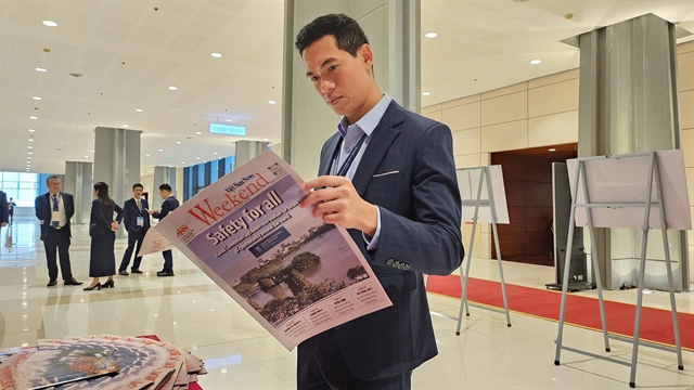 | A foreign delegate reads Việt Nam News weekend edition. Photo courtesy of Cao Lyly |