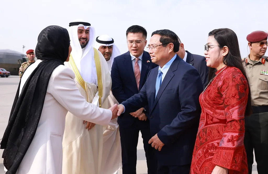 KUWAIT — Prime Minister Phạm Minh Chính, his spouse Lê Thị Bích Trân, and a high-ranking Vietnamese delegation landed at Kuwait International Airport on Sunday afternoon (local time), beginning an official visit to the Middle Eastern country from November 16 to 18.