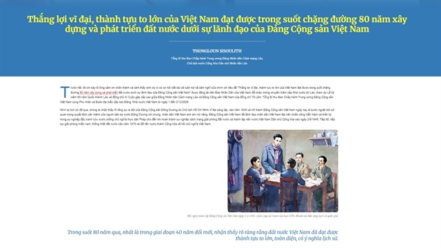 HÀ NỘI — Party General Secretary and President of Laos Thongloun Sisoulith praised Việt Nam’s great victories and achievements over the past eight decades under the Communist Party of Việt Nam (CPV)’s leadership in an editorial published in Vietnamese daily Nhân dân (People) on Monday.