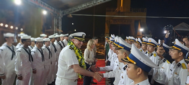 | Vietnamese and the US sailors join a welcome ceremony of the USS ships visit to the city of Đà Nẵng on December 8. The visit underscores the two nations’ commitment to a Comprehensive Strategic Partnership, and serves an important role in celebrating the 30th anniversary of US-Việt Nam relations. — VNS Photo Công Thành |
