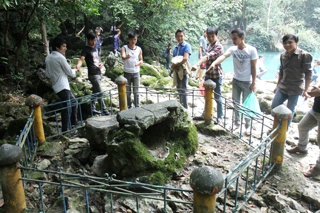 | Visitors view the stone table and benches where President Hồ Chí Minh once worked during his time in Pác Bó. — VNA/VNS Photo |