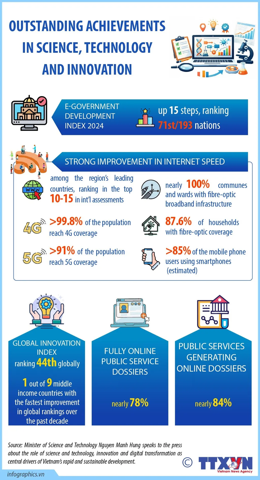 Việt Nam’s Internet speeds have risen sharply, placing the country among regional leaders and within the global top 10–15 by international assessments, with 4G coverage exceeding 99.8 per cent and 5G reaching more than 91 per cent of the population.