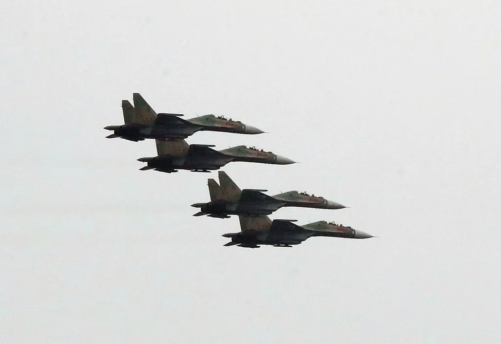 | A soldier of the 927th Regiment, 371st Division (Air Defence – Air Force Service), fully masters the multi-role Su-30MK2 fighter jet in flight. |