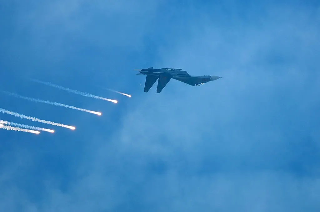 | A formation of Su-30MK2 fighter jets performs a flare display to mark the opening of the 2024 Việt Nam International Defence Exhibition. |