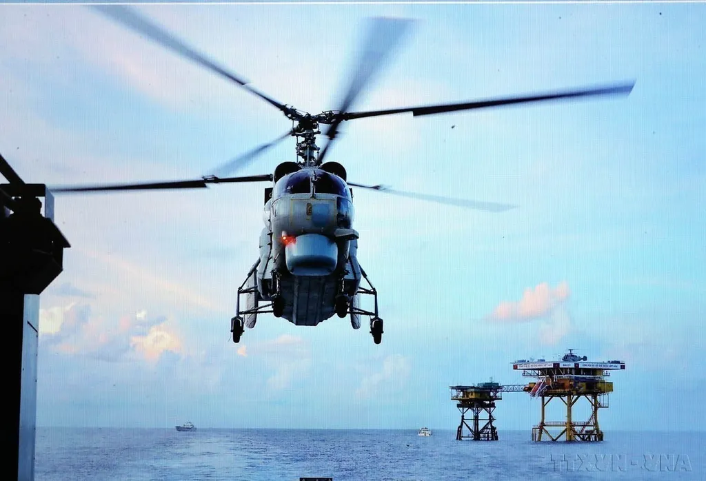 | Naval Air Force personnel conduct training at the DK1 offshore platform. |