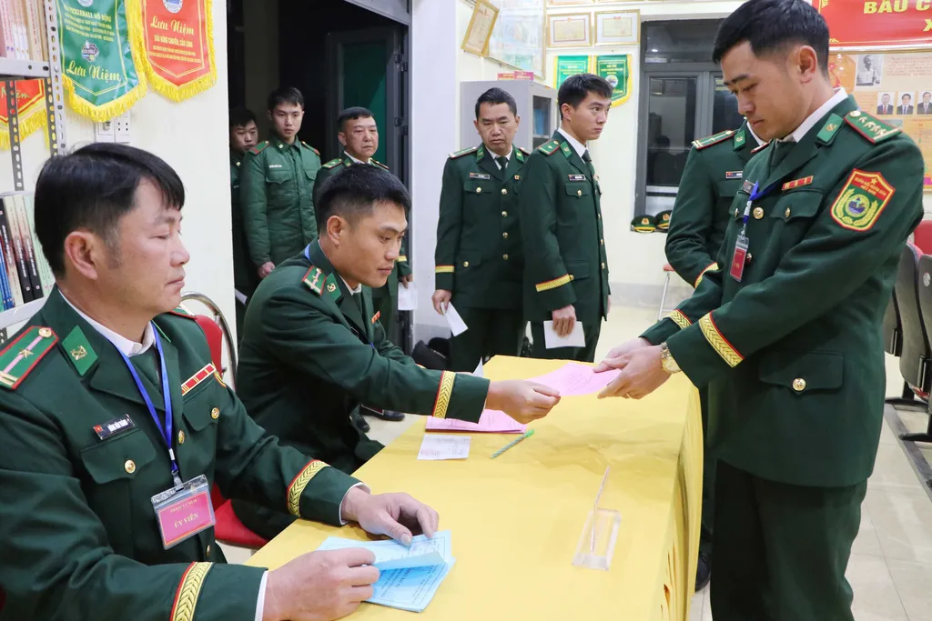 | Voters from Dào San Border Guard Station cast their ballots in the election of deputies to the 16th National Assembly and People’s Councils at all levels for the 2026–2031 term. |