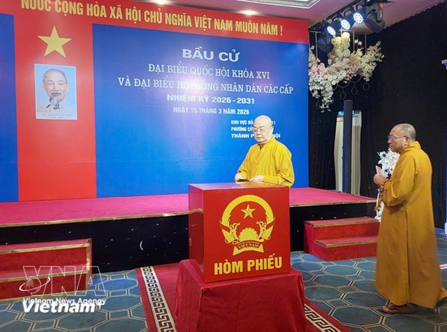| Buddhist monks cast ballots to elect deputies to the 16th National Assembly and people's councils at all levels for the 2026-31 term. — VNA/VNS Photo |