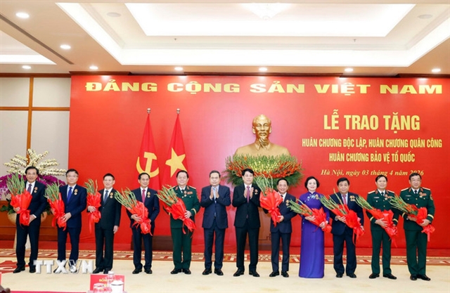 HÀ NỘI — A ceremony was held at the Party Central Committee headquarters on April 3 to confer noble orders on high-ranking leaders and officials of the Party and State in recognition of their particularly outstanding contributions to national construction and safeguarding.