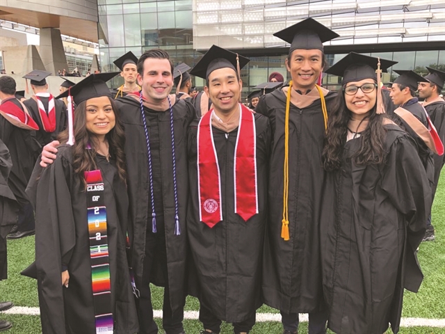 | Nguyễn Anh Tuấn (2nd right) with classmates at his MBA graduation in 2020, a milestone that deepened his passion for technology and entrepreneurship. Photo courtesy of Dr Nguyễn Anh Tuấn |