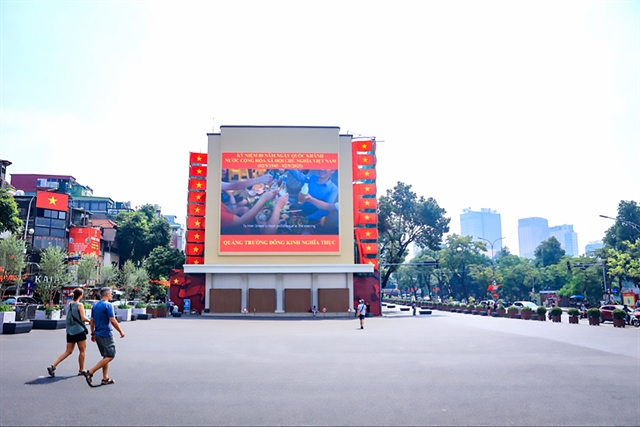 A large LED screen has been installed on the façade of No 7–9 Đinh Tiên Hoàng building. — VNA/VNS Photo |