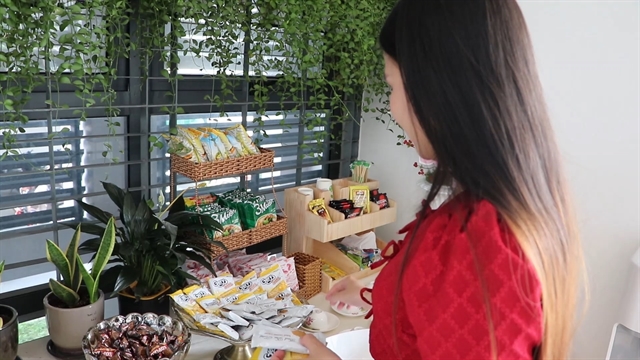 A visitor gets free breakfast at the Tân Đông Hiệp Ward public administrative service centre in HCM City. – VNA/VNS Photo Huyền Trang |