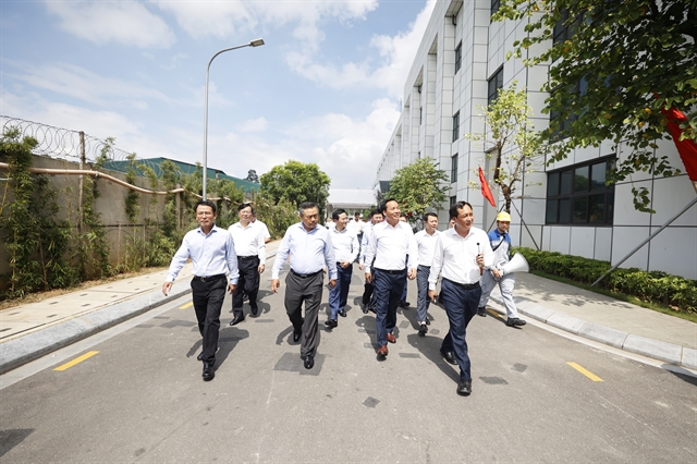 | Hà Nội Chairman Trần Sỹ Thanh and leaders of municipal departments tour the Seraphin Waste-to-Energy Plant. |