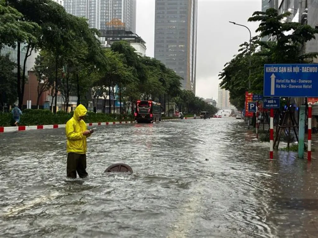 HÀ NỘI — Downpours from the circulation of Typhoon Matmo drenched Hà Nội overnight and early morning Tuesday (October 7), leaving low-lying streets across the inner city under water.