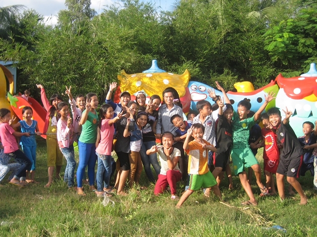 | Nguyễn Văn Hào and his students at the Khmer-Vietnam Friendship Primary School celebrate after a tug of war - a popular folk game. Besides Vietnamese lessons, Hào and other teachers often organise activities to help children learn about their traditions and culture. Photo courtesy of Nguyễn Văn Hào |