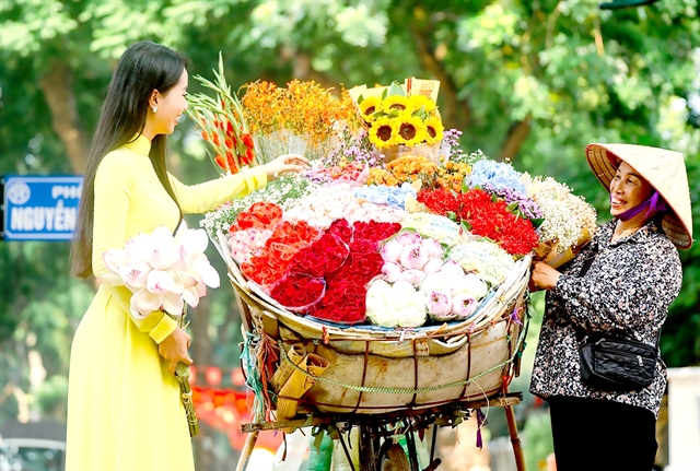 | A street vendor's flower bike - a signature of Hà Nội in the autumn. VNA/VNS Photo Khánh Hòa |