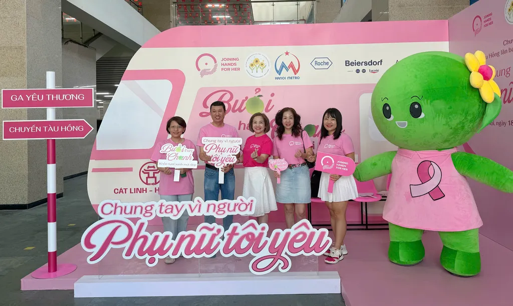 A highlight is the 'Pink Train – Spreading Awareness on the Move' activity on the Cát Linh - Hà Đông metro line in Hà Nội from October 13 to 31, 2025. It carries the relatable message, 'Whether pomelo or lime, healthy and fresh is beautiful', encouraging women to proactively protect their breast health.