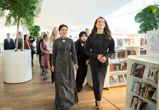 Helsinki — The spouse of Party General Secretary Tô Lâm, Ngô Phương Ly and the spouse of Finnish President Alexander Stubb, Suzanne Innes-Stubb, visited the Helsinki Central Library Oodi on October 21.