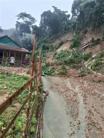 | A landslide damages part of the house of Hồ Văn An in Tây Trà Commune. |