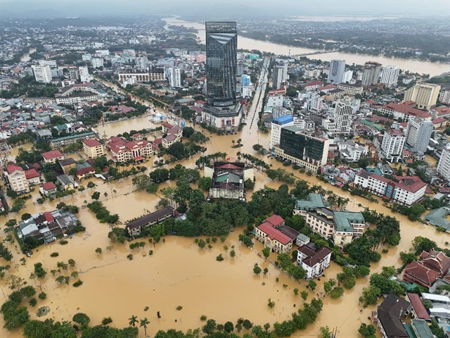HUẾ - Although rainfall has begun to ease on Tuesday afternoon, water is receding slowly in Huế City, leaving large parts of the city centre still deeply flooded on October 28.