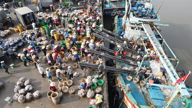 | Fishermen unload seafood at Tân Phước Fishing Port in HCM City. The city authorities have strengthened inspection and supervision efforts to combat illegal, unreported and unregulated (IUU) fishing. — VNA/VNS Photo Huỳnh Sơn |