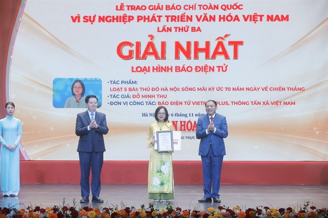 HÀ NỘI – Ninety-five outstanding journalistic works were honoured at the third National Press Awards “For the Cause of Developing Vietnamese Culture,” held on Thursday evening in Hà Nội.
