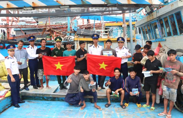 They distributed more than 300 leaflets about IUU fishing, 100 books about the Law on VCG, and 100 national flags to local fishermen.