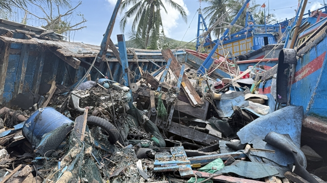 | Fishing boats in Đắk Lắk Province were heavily damaged after the Storm No 13. — VNA/VNS Photo |