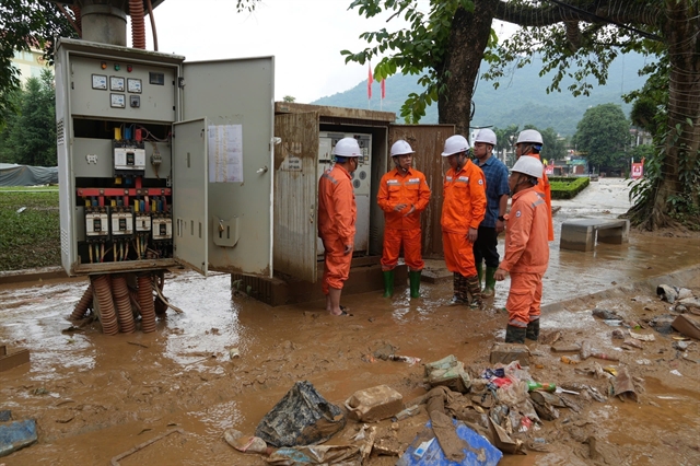 | Engineers of Tuyên Quang's Power Company inspected an electrical substation after Typhoon Bualoi ravaged the province in September. VNA/VNS Photo |