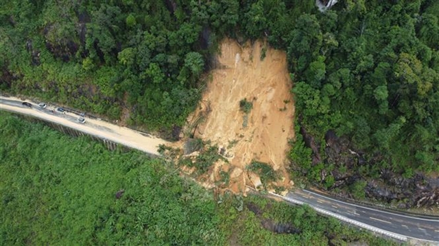 | A section of Khánh Lê Pass in Khánh Hòa Province has been severely damaged by a landslide. Photo: Đặng Tuấn – VNA |