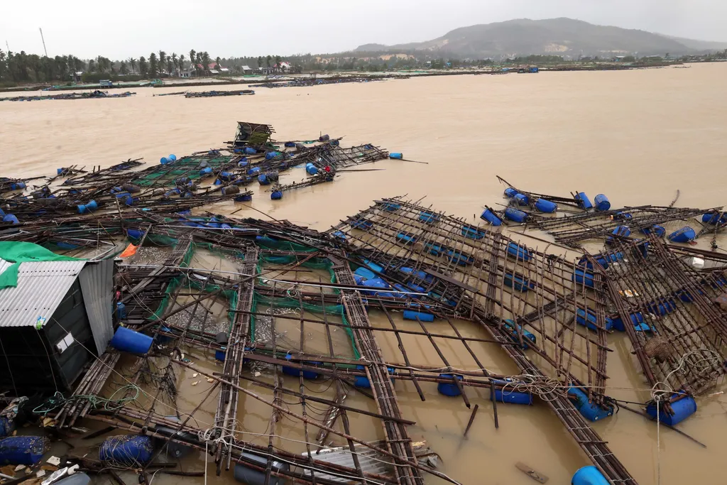| Flooding has caused severe damage to aquaculture cages and rafts in Xuân Cảnh Commune, Đắk Lắk Province. — VNA/VNS Photo |