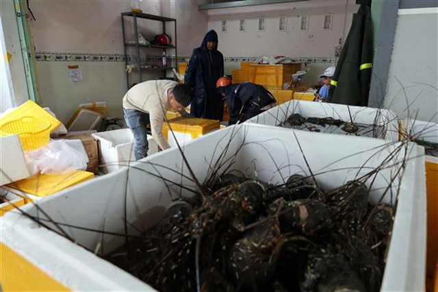 | Lobsters raised for nearly a year and close to harvest were killed en masse by the rising floodwaters, causing estimated losses of several billion đồng per household. VNA/VNS Photos |