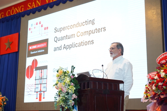 | Prof. Greg Byrd, Associate Department Head of Electrical and Computer Engineering at North Carolina State University, speaks at the conference held in HCM City on November 21. — Photo courtesy of HCMUT |