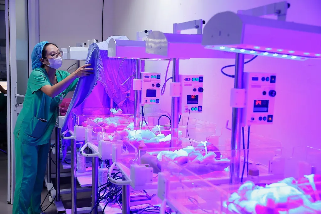 | A nurse caring for newborns at the National Obstetrics and Gynecology Hospital. Photo: VNA |