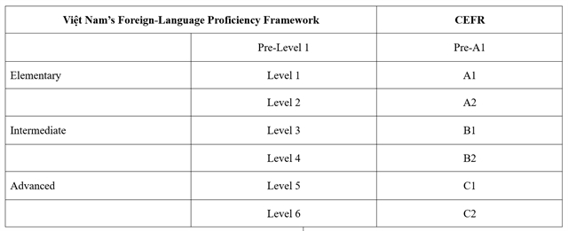 Under the proposal, Việt Nam will adopt a seven-level scale, adding a new Pre-Level 1 tier (equivalent to Pre-A1 in CEFR) for early learners on top of the traditional six levels from Level 1 to Level 6.