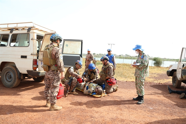 BENTIU — Level-2 Field Hospital Rotation 7 of Việt Nam’s peacekeeping force took part in a large-scale mass-casualty incident (MCI) exercise designed to assess the emergency response capacity of Level-1 hospitals across the sector on Tuesday in Bentiu, South Sudan.