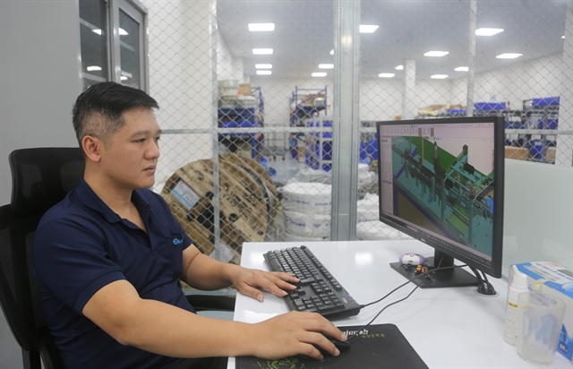 | Engineer Nguyễn Thái Hải and the design of the production line that generates approximately US$60,700 in annual benefits for the company. — VNA/VNS Photo Minh Thu |