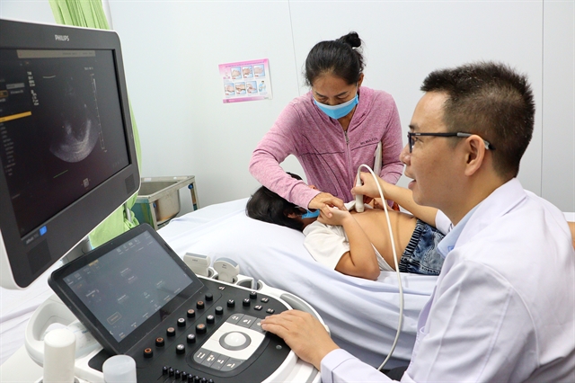 | A doctor conducts free cardiac screening for a child in Vĩnh Long Province on May 24, 2025. VNA/VNS Photo Lê Thúy Hằng |