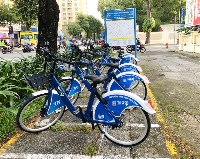 | Public bicycles are parked at bike station in downtown HCM City, offering residents and tourists a green and convenient transport option. — VNS Photo Nguyễn Diệp |