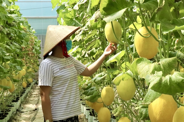 | Honeydew melon planted in a net house in An Giang Province’s Mỹ Hoà Hưng Commune delivers consistent yields and quality. — VNA/VNS Photo Thanh Sang |
