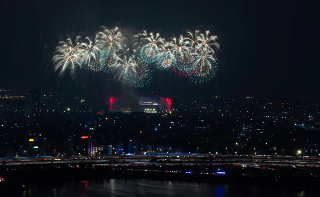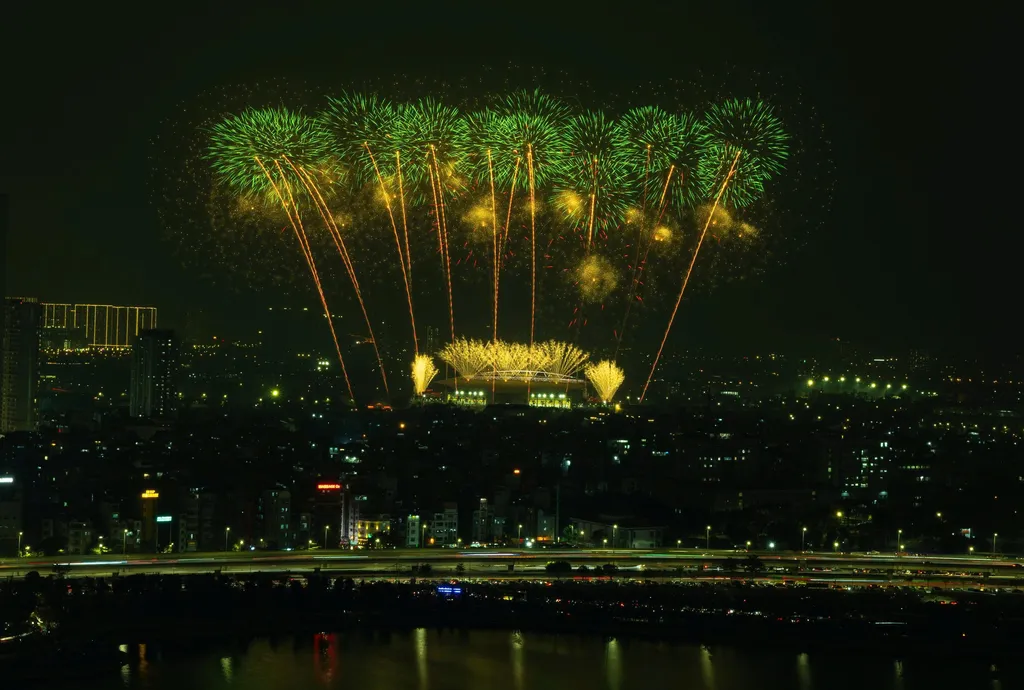 | Fireworks lit up the night sky over Mỹ Đình National Stadium on Friday night. |