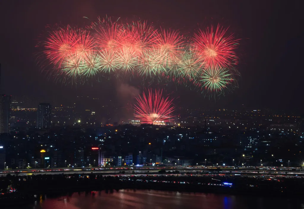 According to the organisers, the display was structured around multiple climaxes, combining low- and high-altitude fireworks to create a smooth and captivating visual sequence. The sky above Hà Nội shifted continuously in colour and form, from warm, familiar shapes such as hearts, stars and smiling faces to emerald crown-like effects reminiscent of hydrangea blooms, conveying a sense of grandeur and solemnity. VNS