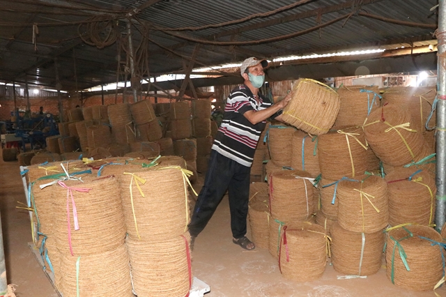 | Coconut husk is used to produce fibre for thread and carpets in Vĩnh Long Province’s Nhị Long Commune, part of a coconut-based circular economy. — VNA/VNS Photo Thanh Hòa |
