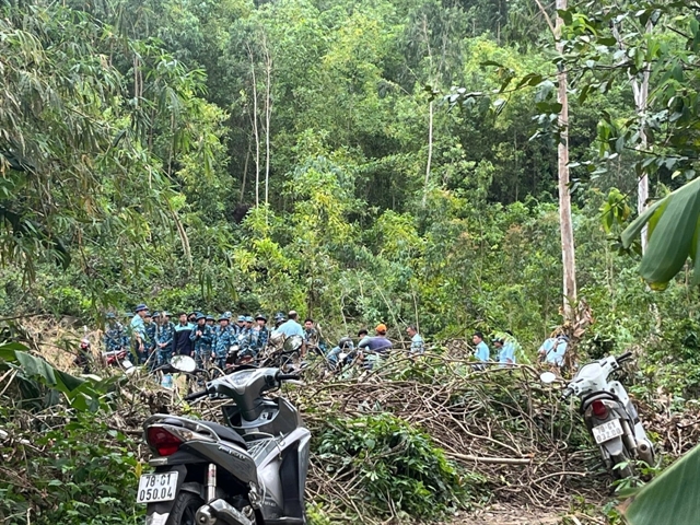| A team from the 940th Air Regiment reaches the crash site at noon on Wednesday. — Photo tienphong.vn |