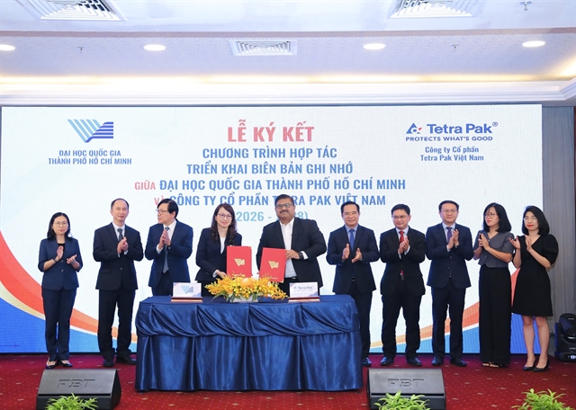 | VNU-HCM and Tetra Pak Việt Nam sign a cooperation agreement in HCM City on January 28 to promote recycling and sustainable packaging solutions. — Photo courtesy of VNU-HCM |
