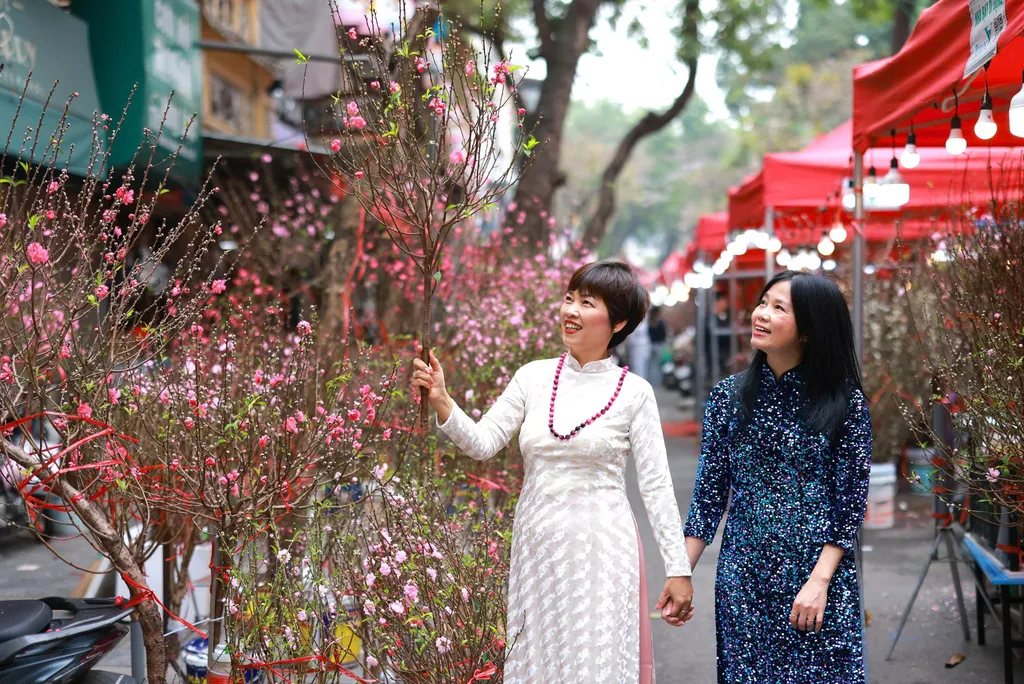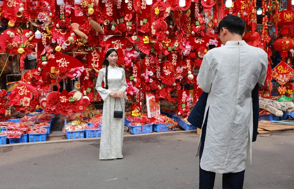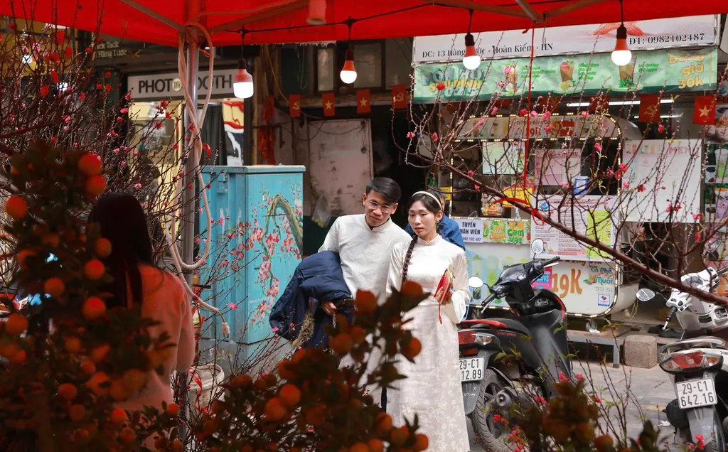 The market has also become a favourite backdrop for younger generations. Traditional ao dai and vintage-inspired attire blend seamlessly with the Old Quarter setting, creating images that capture the unmistakable charm of Hà Nội each spring. VNS