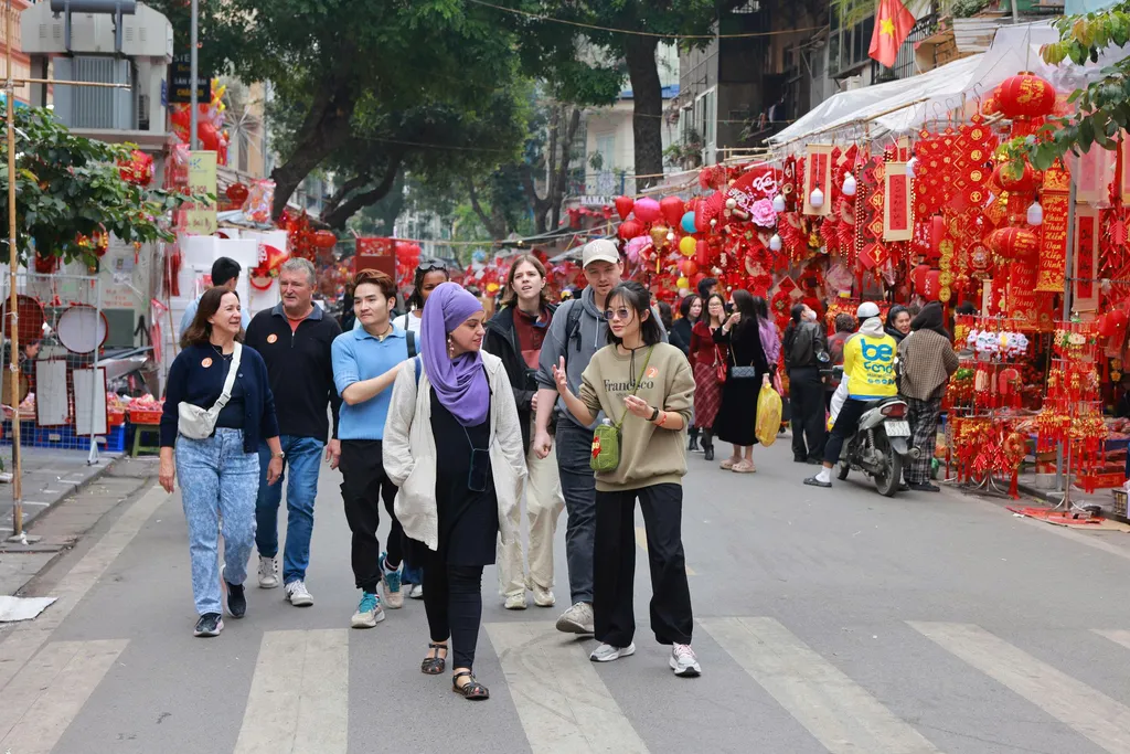 Within the narrow lanes of the Old Quarter, crowds swell in the closing days of the year. Buyers and sellers, families out for a spring stroll, and visitors from across Việt Nam and abroad mingle together, forming a vivid portrait of urban life on the eve of Tết.