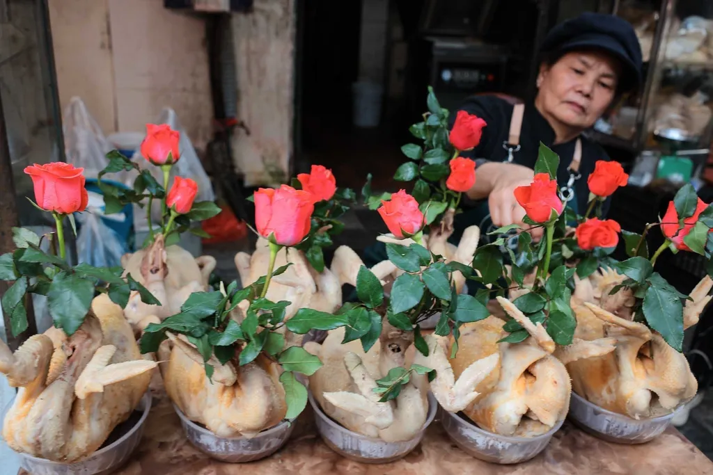 | Many shoppers choose chicken, an indispensable dish on traditional Vietnamese offering trays. |