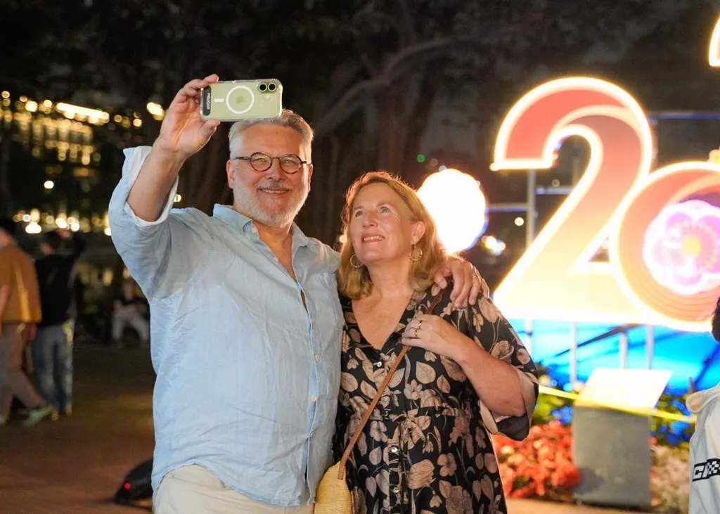 From early evening, the area surrounding the lake and adjacent streets became increasingly lively. People strolled along the pedestrian zone, took photos beneath festive decorations and enjoyed the cheerful atmosphere of the final hours of the old year. VNS